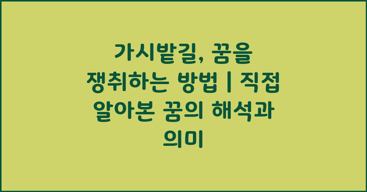 A1: 가시밭길은 삶에서의 어려움이나 시련을 상징합니다. 꿈을 쟁취하기 위해 이 길을 지나야 합니다.