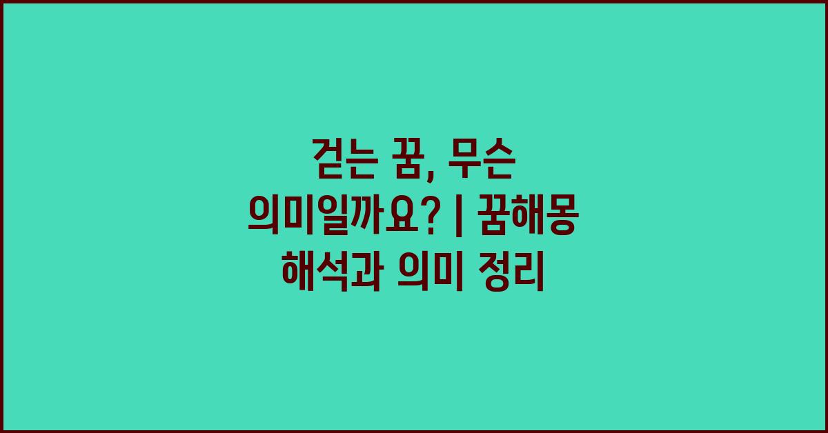 걷는 꿈, 무슨 의미일까요? 힘들게 걷는 꿈은 대개 내면의 갈등이나 어려움을 힘겹게 이해하려는 시도를 나타냅니다. 이런 꿈은 여러분이 현재 어떤 정신적이거나 육체적인 스트레스 상황에 처해 있다는 신호가 될 수 있습니다. 보통 이 꿈에서의 기분이 좋지 않다면, 이는 일상에서의 스트레스를 반영하고 있을 수 있습니다.