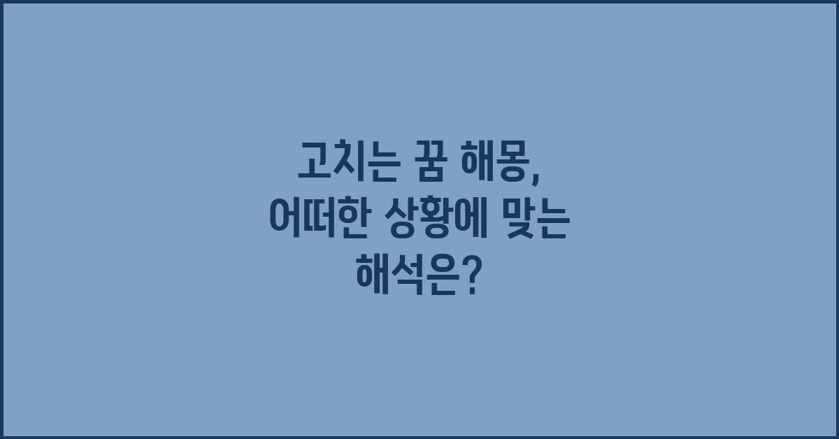 1. 고치는 꿈은 항상 좋은 의미인가요?