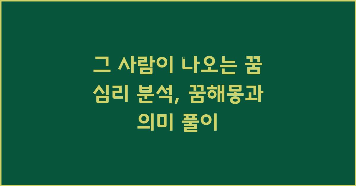꿈에는 우리가 깊이 이해하지 못하는 신비로운 면이 많습니다. 특히, 그 사람이 나오는 꿈은 자주 우리의 현실과 심리 상태를 반영합니다. 이러한 꿈은 단순히 무의미한 상상이 아니라, 우리가 느끼고 있는 감정이나 욕망의 표현으로 해석될 수 있습니다. 예를 들어, 그 사람이 나오는 꿈이 자주 나타난다면 분명 그 사람이나 관련된 감정이 삶에 영향을 주고 있음을 의미합니다.