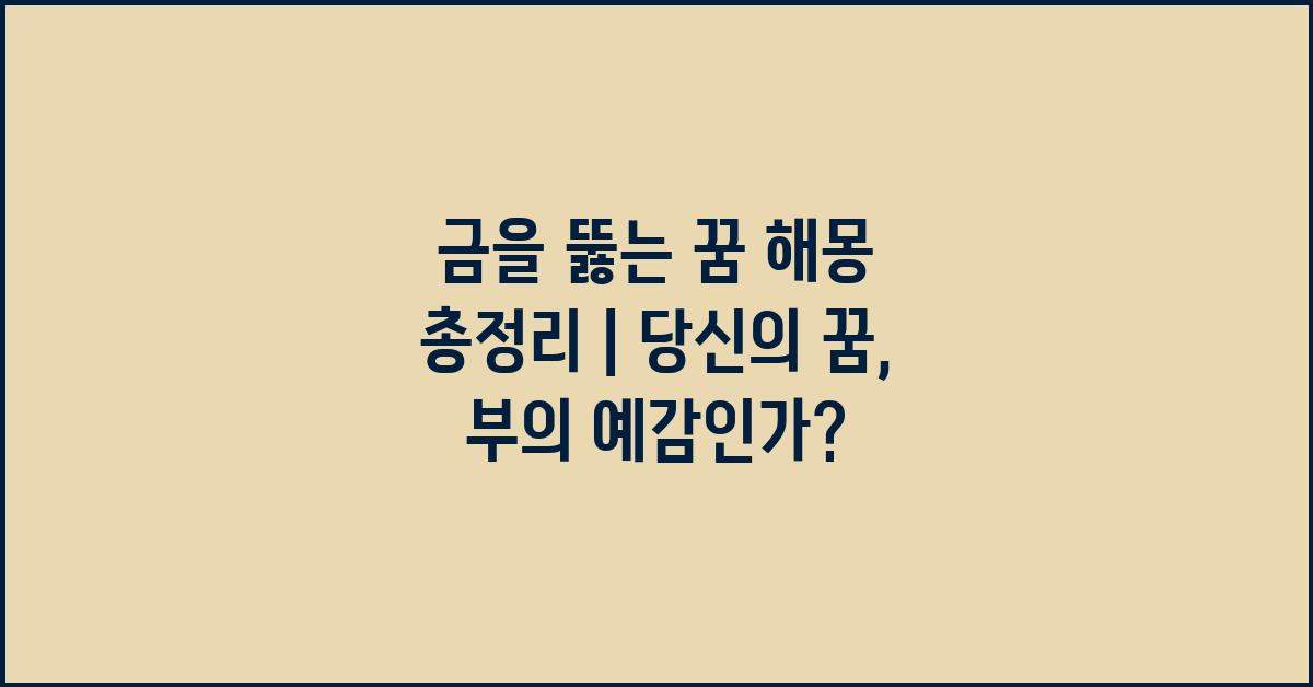 모든 꿈은 무언가의 상징인데, 특히 '금을 뚫는 꿈 해몽 총정리 | 꿈해몽 꿈풀이 꿈해석 꿈의미'는 수많은 사람들이 주목하는 주제입니다. 이러한 꿈은 부와 재물, 그리고 성공에 대한 강력한 신호일 수 있습니다. 이 글에서는 '금을 뚫는 꿈'을 풀어보면서 여러분이 원하는 부의 길을 열기 위한 해석의 실타래를 풀어보려 합니다.