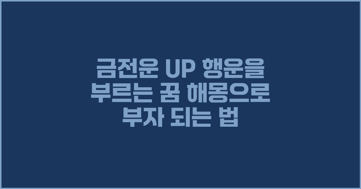 금전운 UP! 행운을 부르는 꿈 해몽이 우리의 재정적 성공에 미치는 영향은 상당히 큽니다. 꿈이란 우리의 무의식이 메시지를 전하는 것인데, 이 메시지를 이해하고 반영함으로써 금전적 성취감을 느낄 수 있습니다. 자신에게 의미 있는 꿈들은 우리를 부자로 만드는 데 필수적인 요소로 작용할 수 있습니다.