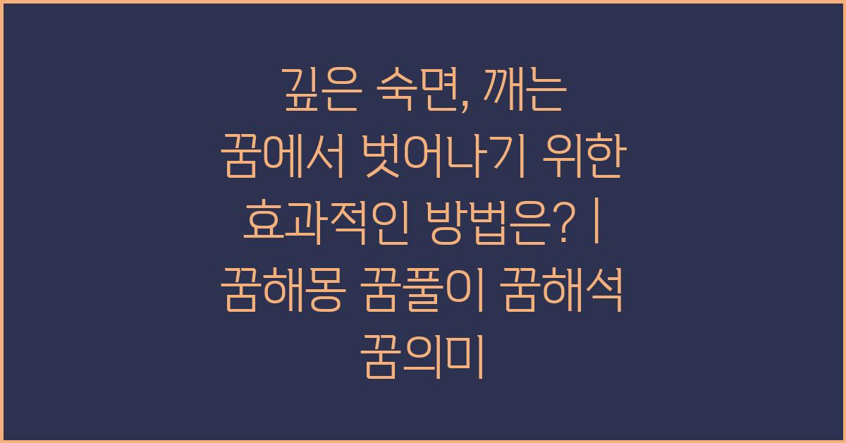 깊은 숙면을 취하는 것은 단지 피로를 푸는 것 이상의 의미가 있습니다. 좋은 수면은 신체의 회복력을 높이고, 정신 건강에도 긍정적인 영향을 미칩니다. 헌데, 꿈 속의 불안감이나 스트레스는 이러한 숙면을 방해합니다. 그래서 우리가 깨는 꿈에서 벗어나기 위해서, 일단은 그 원인을 파악하고 해결책을 찾아야 합니다.