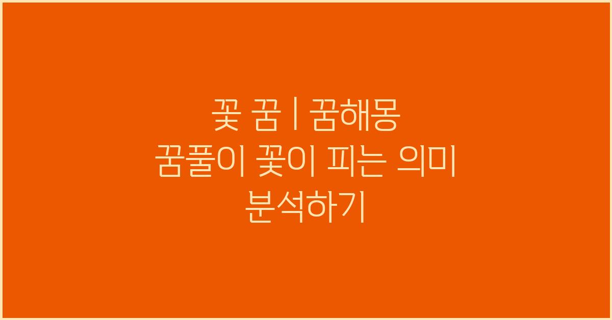꽃 꿈을 해석하는 데 유용한 몇 가지 방법이 있습니다. 첫째, 꿈에서 느낀 감정을 기록해 보세요. 기쁨, 슬픔, 혼란 등 어떤 감정이었든, 그 감정 자체가 해석의 중요한 단서가 될 수 있습니다. 둘째, 꿈 속의 flower 종류와 색깔을 기억해 두세요. 이는 꽃 꿈 | 꿈해몽 꿈풀이 꿈해석 꿈의미를 제대로 이해하는 데 큰 도움이 됩니다.