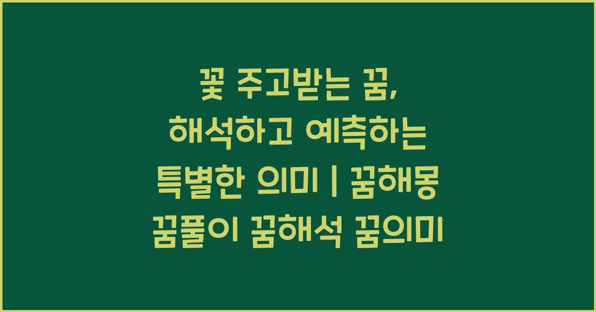 꽃 주고받는 꿈에서 꽃의 색깔이나 종류에 따라 해석이 달라질 수 있습니다. 예를 들어, 빨간 장미는 사랑과 열정을 의미하고, 흰색 꽃은 순수함과 평화를 상징합니다. 꽃의 색에 따라 서로 다른 해석을 할 수 있기 때문에, 꿈에서 느꼈던 감정과 꽃의 종류를 주의 깊게 기억해 두는 것이 중요합니다. 꿈 해몽으로 미래를 예측해봐요 | 꿈해몽 꿈풀이 꿈해석 꿈의미에 따르면, 이런 상징들을 통해 우리는 감정의 흐름을 읽고, 향후에 발생할 수 있는 상황을 예측할 수 있습니다.