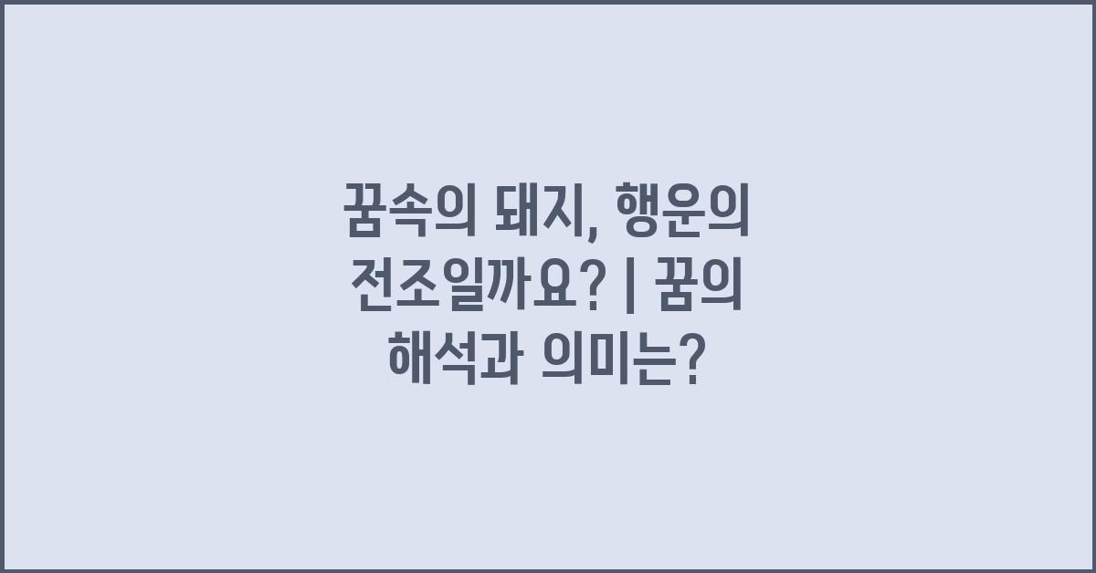 여러분, 꿈속에서 돼지를 꾸어본 경험이 있으신가요? 꿈속의 돼지는 단순한 상징이 아니라 종종 행운과 풍요를 나타내는 긍정적인 의미를 갖고 있습니다. 꿈속의 돼지, 행운의 전조일까요? 평소에 갖고 있던 궁금증을 풀어보겠습니다. 이 글에서는 꿈 해몽의 기초부터 돼지와 관련된 다양한 해석을 살펴보겠습니다. 꿈에서 받는 메시지를 파악하는 과정은 언제나 흥미로우며, 다양한 감정을 불러일으킵니다.