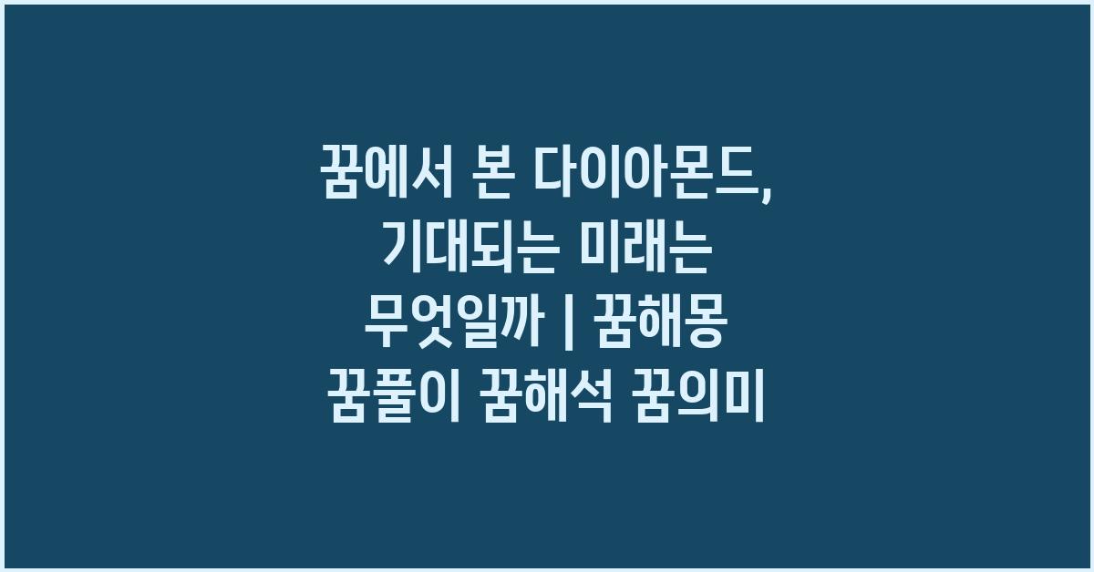 꿈에서 본 다이아몬드, 기대되는 미래에 대한 변별력을 높이기 위해 구체적 사례를 하나 들어보겠습니다. 한 친구가 꿈에서 다이아몬드를 찾았다고 했습니다. 그는 그 꿈이 실현되기를 바라며, 꿈 해몽가에게 물어보았습니다. 해몽가는 "이 꿈은 당신의 숨겨진 잠재력과 마주하게 될 것임을 상징한다"고 설명했습니다.