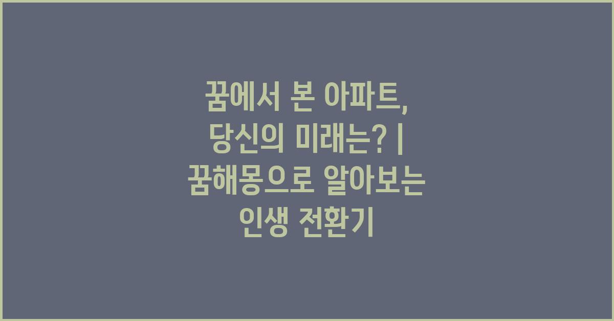 꿈에서 본 아파트, 당신의 미래는? | 꿈해몽 꿈풀이 꿈해석 꿈의미를 통해 자신의 심리를 이해하고, 미래를 준비하는 데 큰 도움이 됩니다. 아파트는 우리의 삶의 기반이 되는 공간으로, 이러한 꿈은 삶의 방향성을 제시하는 중요한 역할을 합니다. 꿈의 의미를 깊이 이해하고, 이를 바탕으로 인생을 설계해 보세요.