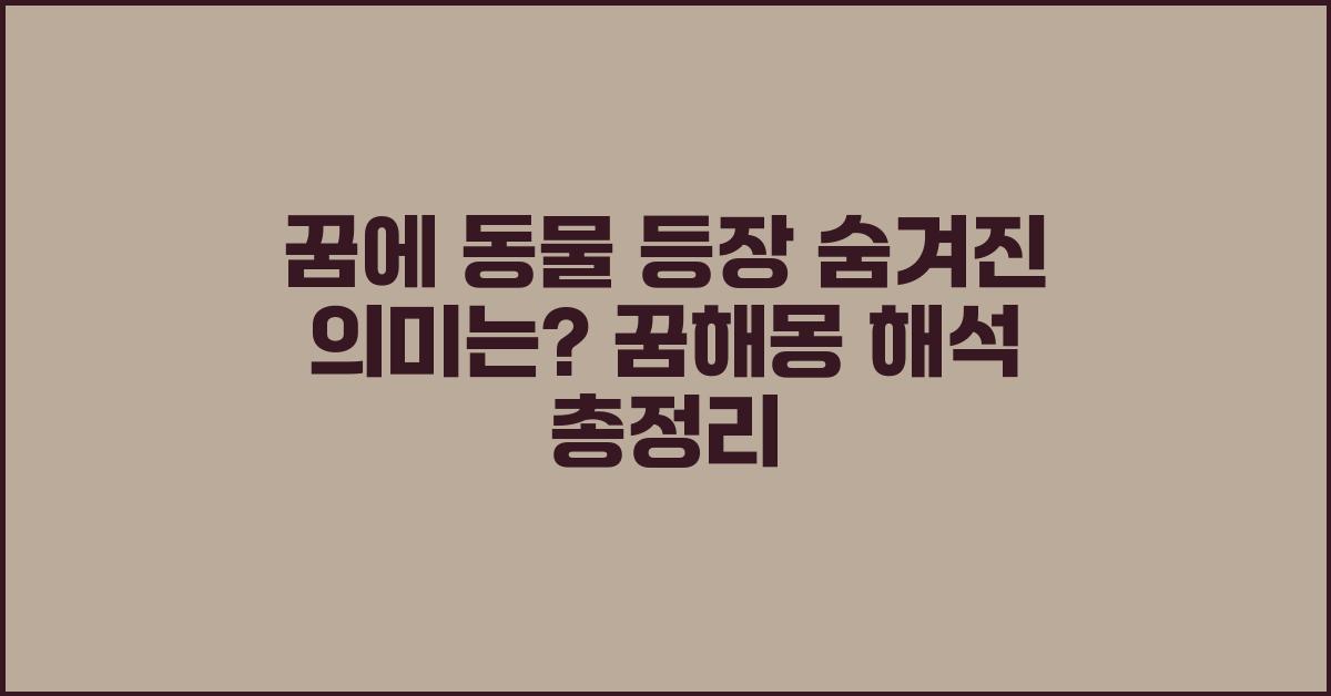🐾 꿈에 동물 등장! 당신의 꿈은 무엇을 말하는가?