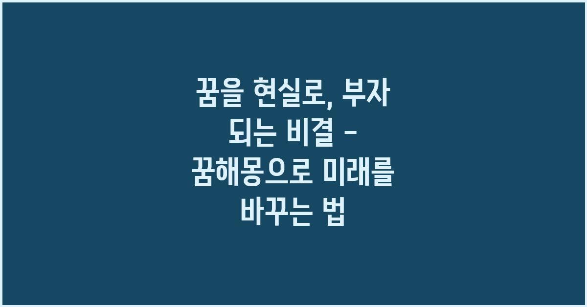꿈은 우리의 무의식이 만들어내는 신비로운 세계입니다. 매일 밤 우리는 꿈을 꾸지만, 그 꿈이 가지고 있는 의미를 아는 이는 과연 얼마나 될까요? 꿈을 현실로, 부자 되는 비결 | 꿈해몽 꿈풀이 꿈해석 꿈의미 를 활용하면, 우리의 잠재력과 목적의식을 깨울 수 있습니다. 많은 사람들이 꿈을 단순히 지나치는 경험으로 여깁니다. 그러나 꿈의 해석은 우리에게 많은 통찰력을 제공합니다. 내 경험상, 꿈을 통해 얻은 깨달음은 삶의 방향성을 크게 바꾸어 놓았던 경우가 많았어요.