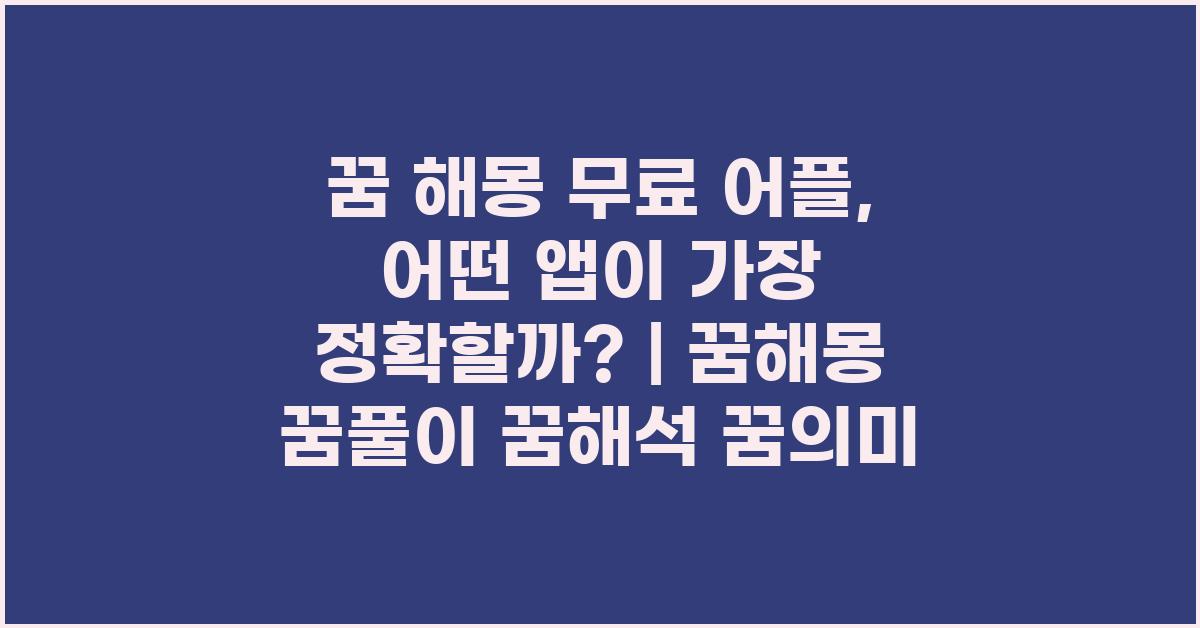 그럼 어떤 앱들이 있을까요? 우선 첫 번째로 소개할 앱은 '꿈해몽 - 꿈 풀이'. 이 앱은 사용자 친화적인 UI로 직관적인 사용이 가능합니다. 다양한 꿈의 해석이 등록되어 있으며, 사용 후기도 많은 편입니다. 내가 궁금한 꿈을 검색하면 금방 찾아낼 수 있다는 점에서 많은 사용자에게 사랑받고 있습니다.