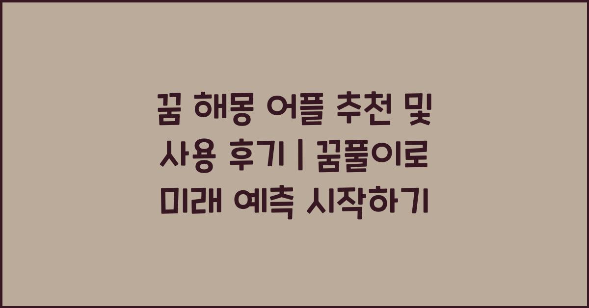 내 경험상, 이러한 어플을 사용하여 꿈을 해석하며 나의 일상과 감정에 대해 깊이 있는 통찰력을 얻을 수 있었습니다. 매일 매일 꿈꾸는 것은 불가피한 현상입니다. 하지만 그 꿈이 과연 내게 무슨 메시지를 전달하려는 것인지, 간단한 질문이 아닐 수 있습니다. 그래서 저는 여러 꿈 해몽 어플을 직접 사용해보았고, 이 과정에서 느낀 다양한 감정과 깨달음을 여러분과 나누고자 합니다. 꿈 해몽 어플 추천 및 사용 후기 | 꿈해몽 꿈풀이 꿈해석 꿈의미에 대해 자세히 알아보겠습니다.