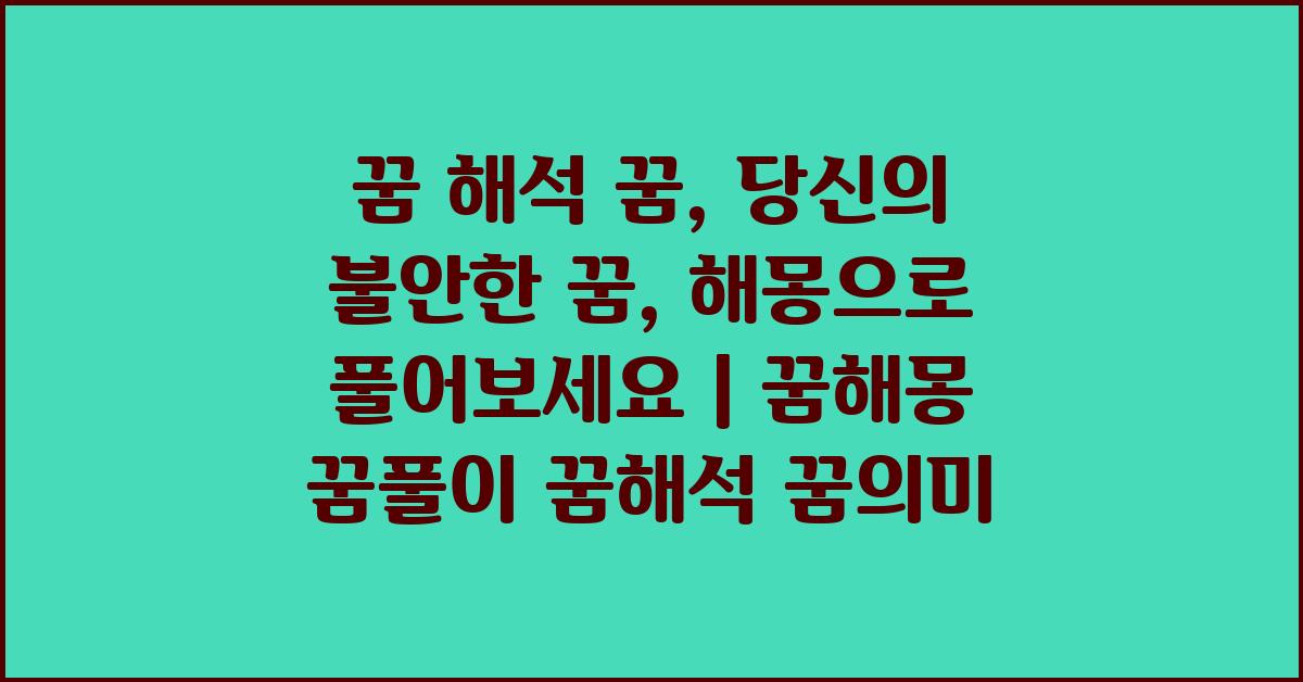 이와 같은 불안한 꿈은 우리가 겪고 있는 스트레스나 압박을 반영합니다. 그렇다면 이런 꿈을 해석하면서 어떻게 자신의 불안을 줄여나갈 수 있을까요? 해몽의 과정에서 자신의 감정을 정리하고 이해하며, 필요한 부분에 주의를 기울일 수 있기 때문입니다. 꿈 해석 꿈: 꿈속의 메시지를 읽어보세요 | 꿈해몽 꿈풀이 꿈해석 꿈의미를 통해 그 해답을 찾아가도록 해요.