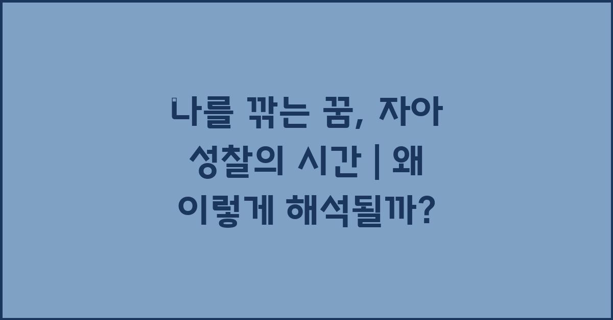 자아 성찰은 우리가 자신의 감정과 생각을 깊게 들여다보는 과정을 의미합니다. 특히, 나를 깎는 꿈이 자아 성찰을 그토록 강력하게 요구하는 이유는, 꿈에서 느낄 수 있는 강렬한 감정 때문입니다. 이 감정들이 꿈에서의 나를 다듬는 과정과 연결되어, 결국엔 진정한 나 자신을 찾는 여정을 시작하게 합니다.