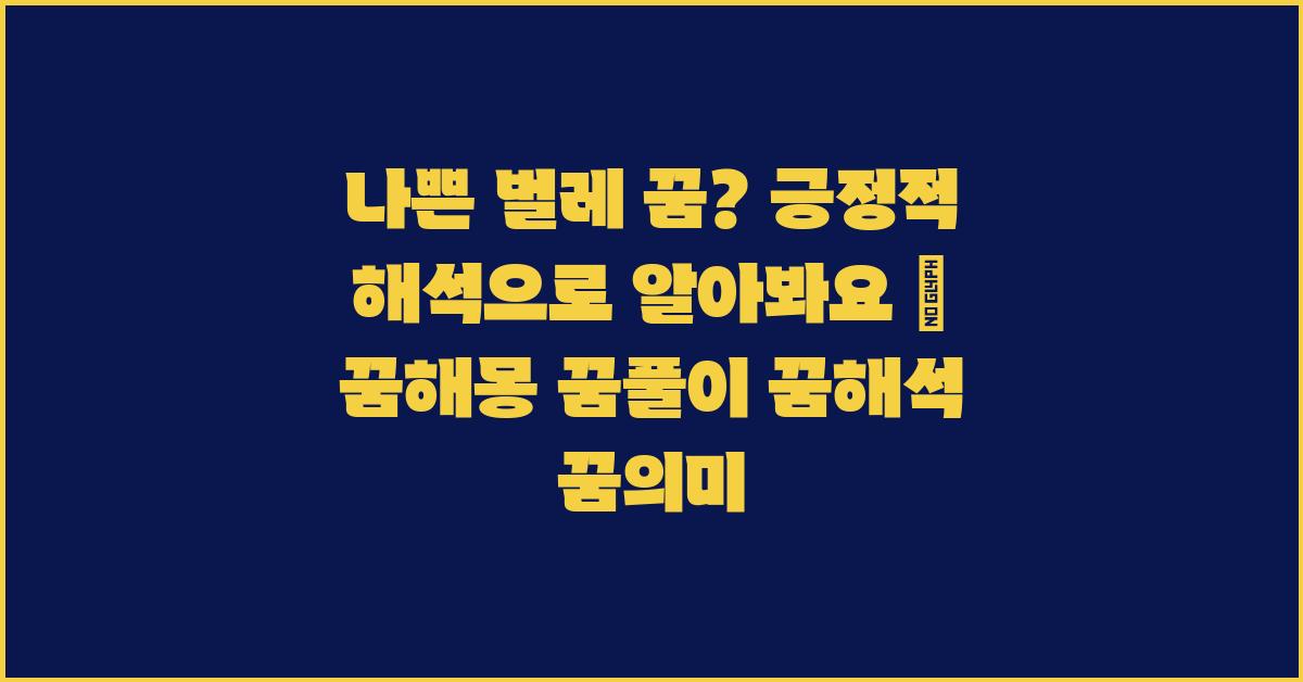 꿈속에서 나쁜 벌레를 보는 것은 많은 사람들에게 불안감과 두려움을 안겨줍니다. 벌레는 피하고 싶은 존재로 인식되기 마련인데요. 하지만 여러분, 이러한 꿈이 실제로 여러분의 삶에 어떤 의미를 가질 수 있는지 깊이 파헤쳐 볼까요? 꿈의 해석은 각 개인의 경험과 감정에 따라 달라지지만, 긍정적인 시각으로 바라본다면 이 꿈이 여러분에게 주는 메시지는 상당히 유익할 수 있습니다. 나쁜 벌레 꿈? 긍정적인 해석으로 바꿔보세요! | 꿈해몽 꿈풀이 꿈해석 꿈의미.