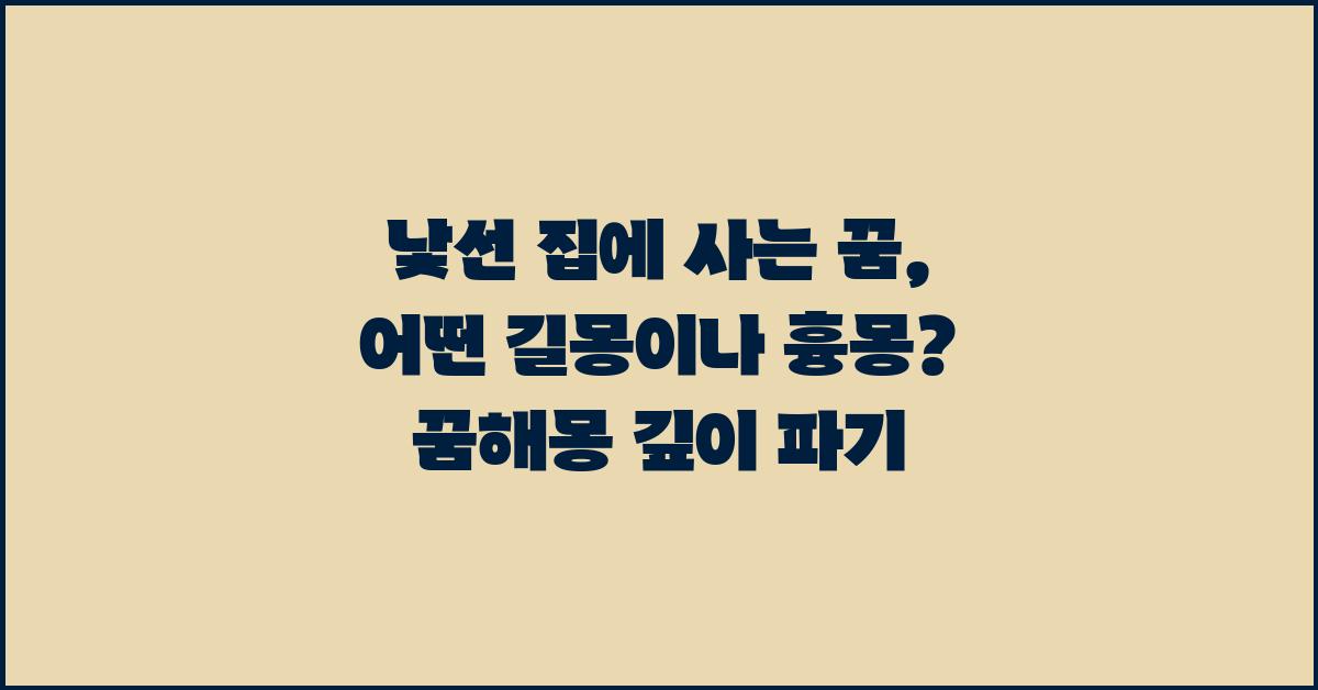 많은 사람들은 꿈속에서 경험한 낯선 집이 실제 생활에서 자신들에게 어떤 방식으로 영향을 미칠지를 고민하게 됩니다. 하지만 꼭 불안하거나 흉측한 느낌을 갖지 않아도 됩니다. '낯선 집에 사는 꿈, 길몽일까 흉몽일까?' 이 질문에 대해 다양하게 접근해 보는 것이 필요합니다.