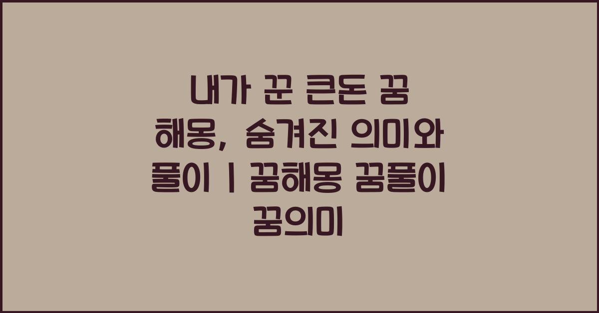 내가 꾼 큰돈 꿈 해몽: 정확한 해석 | 꿈해몽 꿈풀이 꿈의미에 대한 나의 개인적 경험을 나누고 싶습니다. 제가 한때 꿈속에서 특정한 숫자를 가진 복권을 구입하고, 그것이 대박이 났다는 이야기를 꺼내볼게요. 꿈에서 저는 성공의 달콤한 맛을 느꼈지만, 동시에 현실에서는 제가 겪고 있는 재정적 압박이 꿈속에서도 저를 따라와 걱정을 안겼습니다. 순간적인 행복과 현실의 두려움은 마치 날개 달린 금붕어처럼 크게 부풀어 오르다 사라지는 듯 했죠.