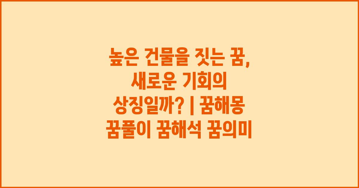꿈은 우리의 무의식적인 심리를 드러내는 중요한 요소입니다. 특히, 꿈에서 높은 건물을 짓는 상황은 강한 상징성을 지니고 있습니다. 이는 개인의 목표와 야망을 반영할 뿐만 아니라, 새로운 기회를 맞이할 준비가 되었음을 나타내기도 합니다. 높은 건물을 짓는 꿈은 단순한 꿈이 아닌, 여러분의 삶에 들어올 뜻밖의 기회들을 암시하는 신호일 수 있습니다.