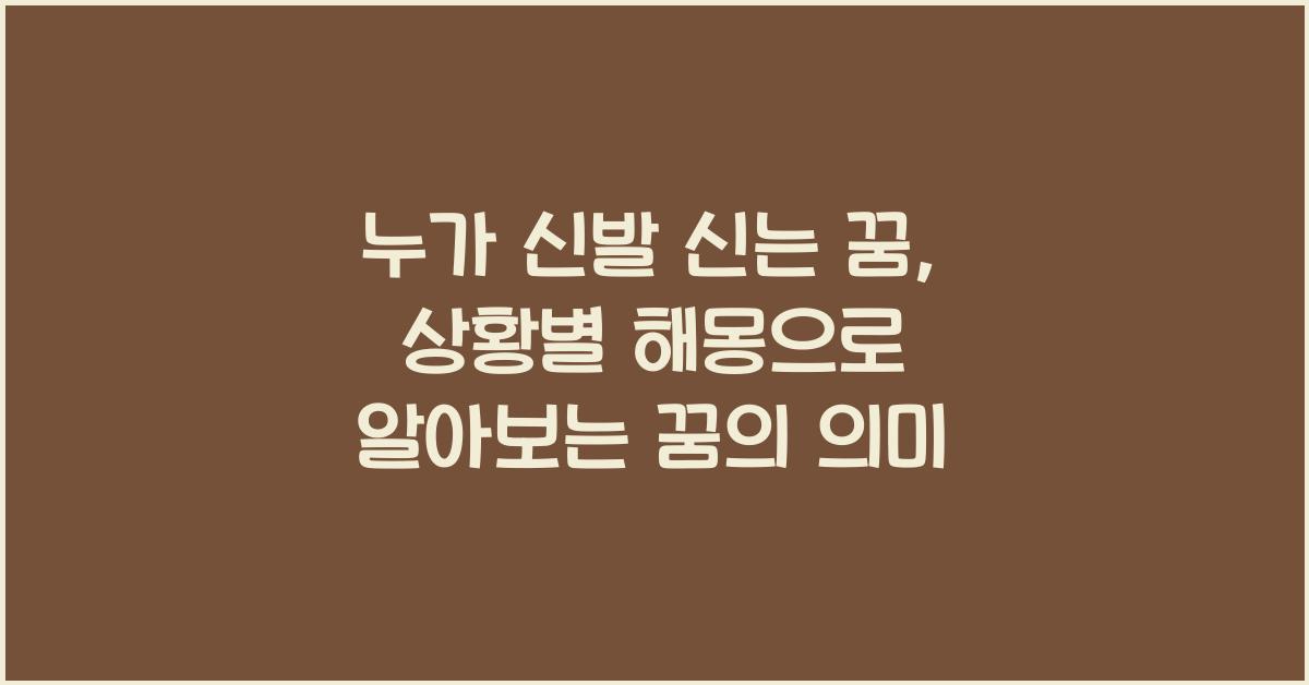 누가 신발 신는 꿈은 다양한 해석이 가능합니다. 꿈의 상황에 따라 그 의미가 달라질 수 있으며, 이 글에서는 여러 상황별 해몽을 통해 심층적으로 알아보겠습니다.