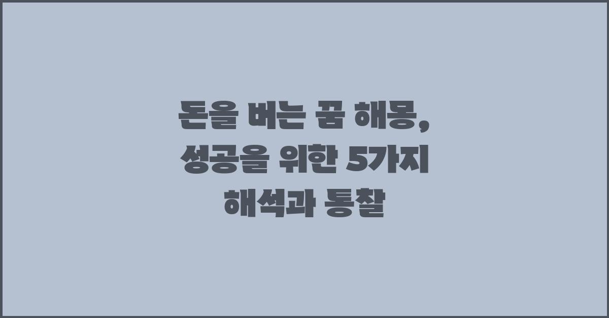 ✅ 돈을 버는 꿈 해몽의 요약 및 FAQ