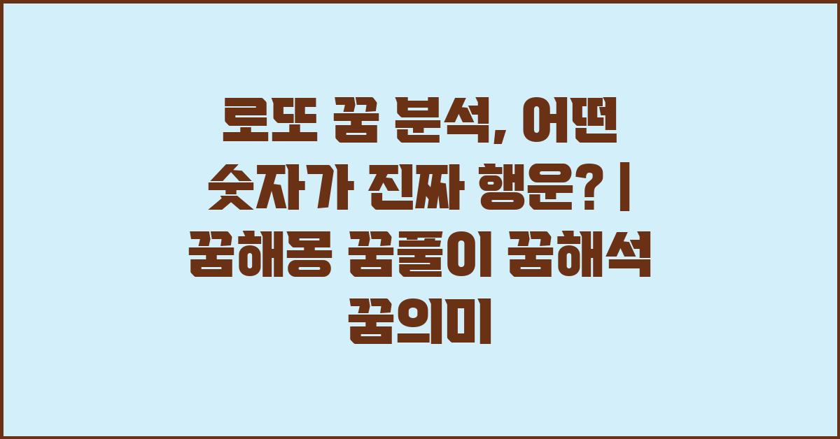 로또 꿈 분석: 돈, 숫자, 행운의 상징 | 꿈해몽 꿈풀이 꿈해석 꿈의미를 통해 찾은 그 숫자들로 로또에 도전해보세요. 여러분이 과연 어떤 운을 끌어당길 수 있을지 기대하며, 미래에 대한 긍정적인 마음을 잃지 않는 것이 가장 중요합니다.