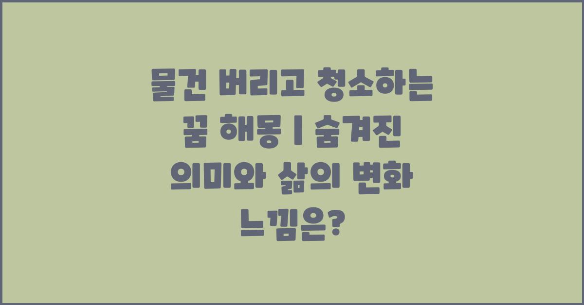 꿈은 우리 잠재의식의 창이자, 그리고 일상에서 경험하지 못하는 다양한 감정을 탐구하는 수단입니다. 물건 버리고 청소하는 꿈 해몽은 여러분의 정신적, 감정적 상태를 반영할 수 있습니다. 이러한 꿈을 꾼 후 다시 일상으로 돌아왔을 때, 어떤 기분이나 생각이 드셨나요? 이 꿈은 많은 경우 삶의 변화나 정리의 필요성을 나타내며, 내면의 갈등을 해소하려는 시도를 의미할 수 있습니다.