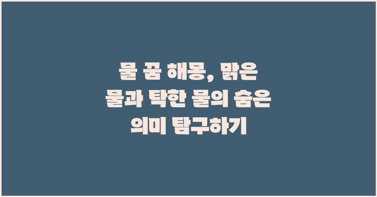 내 경험으로는, 한때 탁한 물이 넘치는 바다에서 뛰어드는 꿈을 꾸었을 때가 있었습니다. 그 꿈은 불안함이 가득한 상태였지만, 그 물속에서 무언가를 찾는 제 모습이 강렬하게 인상 깊게 남았습니다. 여러분도 이런 경험, 갖고 계신가요? 탁한 물은 때로는 우리의 불안을 직면하게 만드는 미러와도 같습니다.