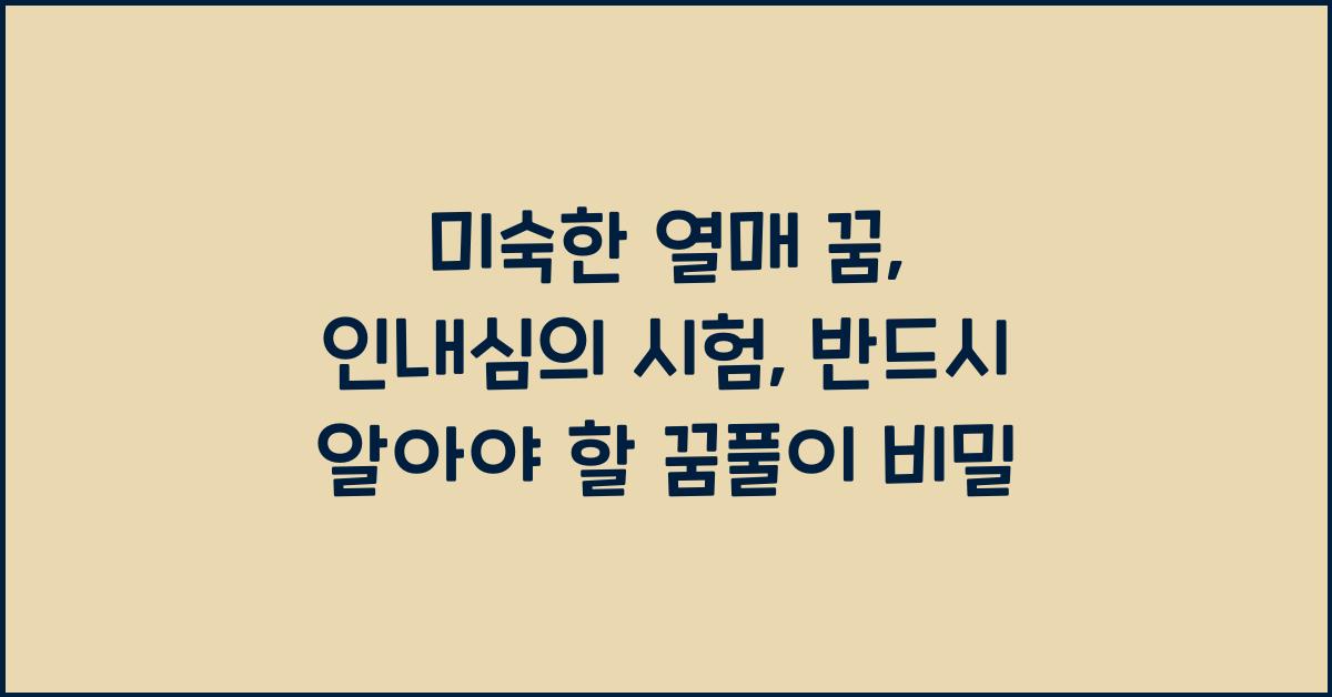 꿈의 해석은 개인의 경험, 감정 상태, 그리고 꿈의 심리적 배경과 밀접하게 연결되어 있습니다. 따라서 미숙한 열매 꿈: 인내심의 시험 | 꿈해몽 꿈풀이 꿈해석 꿈의미를 해석할 때는 이러한 요소들을 함께 고려해야 합니다. 꿈 속의 미숙한 열매는 곧 우리 자신이 미숙하게 성장하고 있다는 메시지를 담고 있습니다.