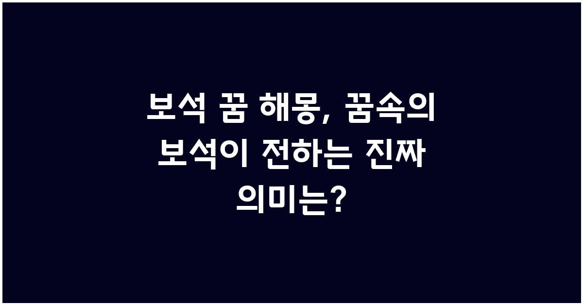 꿈은 우리가 의식적으로 바라보지 못하는 많은 내면의 사연과 감정을 담고 있습니다. 특히 꿈속에서 보석을 경험하게 된다면, 그 상징적인 의미가 무엇일지 궁금할 것입니다. 보석 꿈 해몽: 꿈속에서 만난 보석의 메시지 | 꿈해몽 꿈풀이 꿈해석 꿈의미를 통해 그 깊은 메시지를 함께 탐구해봅시다.