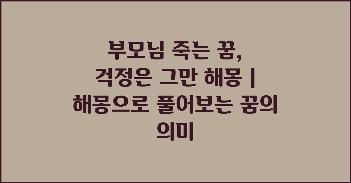 부모님 죽는 꿈 꾸기에 대한 심리적 접근