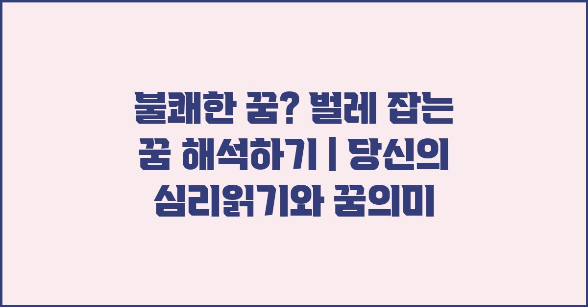 벌레는 일반적으로 불쾌한 존재로 인식됩니다. 꿈 속에서 벌레를 잡는 행위는 불필요한 것들을 정리하고자 하는 마음의 표현일 수 있습니다. 예를 들어, 과거의 상처, 부정적인 감정, 원치 않는 사람들로부터 벗어나는 것을 의미할 수 있습니다. 제 경험상, 이런 꿈을 꾼 이후에는 현실에서도 살짝 마음이 홀가분해진 느낌을 받곤 했습니다.