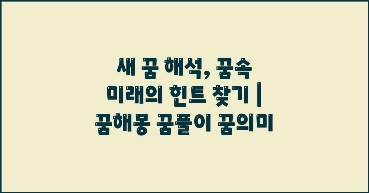 새 꿈 해석, 즉 꿈으로 알아보는 미래의 힌트는 각자의 삶에서 예측할 수 있는 방향을 제시합니다. 꿈은 우리의 무의식을 헤아릴 수 있는 보물창고와 같습니다. 나 자신을 탐험하고, 구체적인 감정이나 이정표를 찾아가는 여정이 되기를 바랍니다.