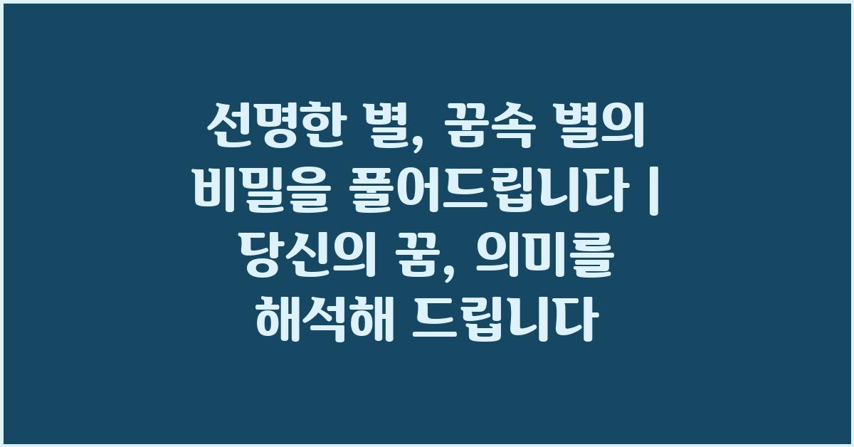 A1: 일반적으로 꿈속에서의 별은 희망과 목표를 상징해요. 긍정적인 변화가 다가오거나 중요한 결정을 내릴 시기를 알려줍니다.