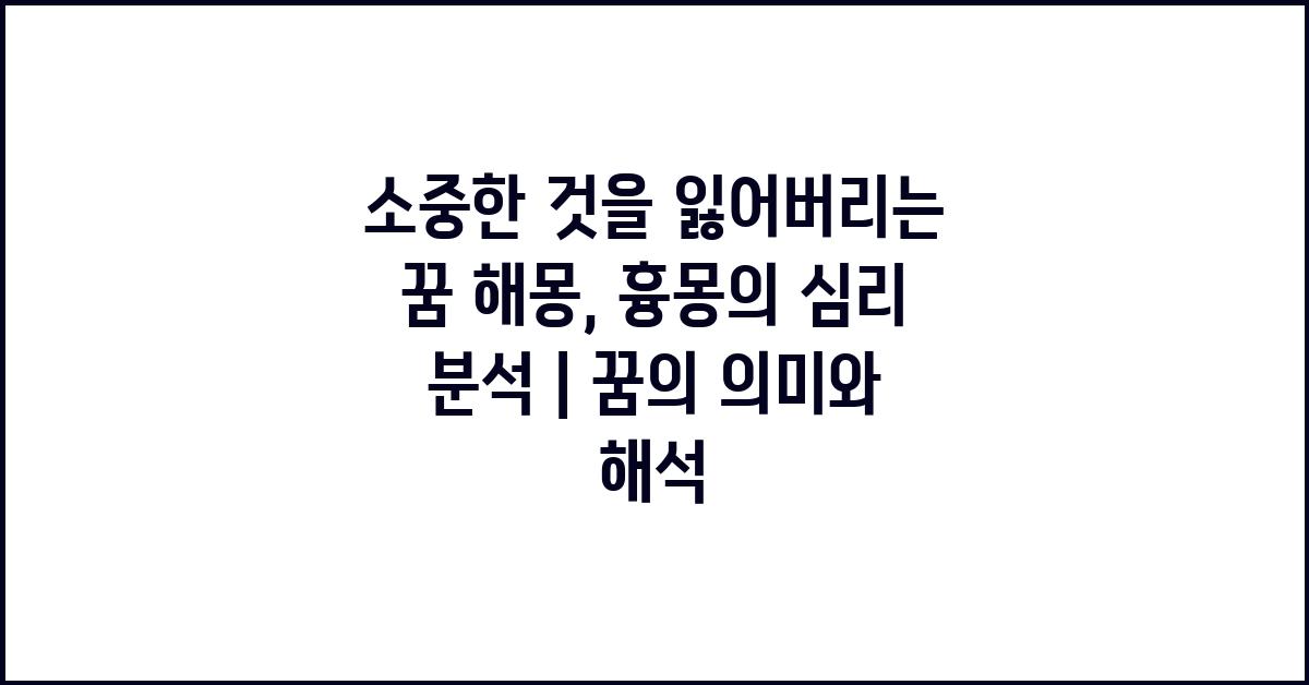 꿈은 우리의 무의식이 표현되는 신비로운 공간입니다. 특히 소중한 것을 잃어버리는 꿈은 많은 사람에게 혼란과 불안을 주는데요. 이 꿈이 나타날 때마다 우리는 심리적으로 큰 영향을 받습니다. 이는 단순한 상징인지, 아니면 우리 내면의 깊은 두려움을 반영하는 것인지 생각해 볼 필요가 있습니다. 소중한 것을 잃어버리는 꿈, 흉몽의 심리 분석 | 꿈해몽 꿈풀이 꿈해석 꿈의미에 대한 깊은 고민이 필요할 때입니다.