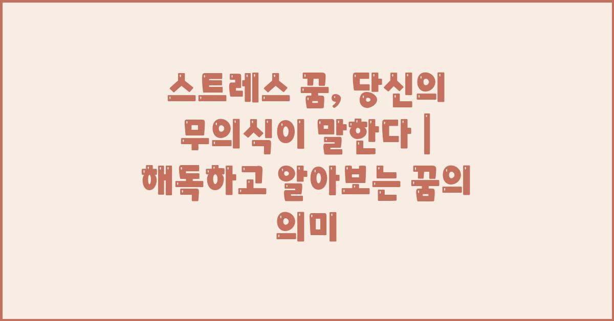 꿈은 우리가 잠든 동안 영혼이 여행을 떠나는 신비로운 순간입니다. 많은 사람들이 꿈속에서 자신도 모르게 겪는 감정, 이미지, 단어들이 있습니다. 특히 스트레스를 느끼는 현대인들에게 꿈은 무의식이 전해주는 메시지로 가득 차 있습니다. 스트레스 꿈, 당신의 무의식이 말한다 | 꿈해몽 꿈풀이 꿈해석 꿈의미는 우리가 놓치고 있는 메시지를 알아내는 귀중한 기회입니다.