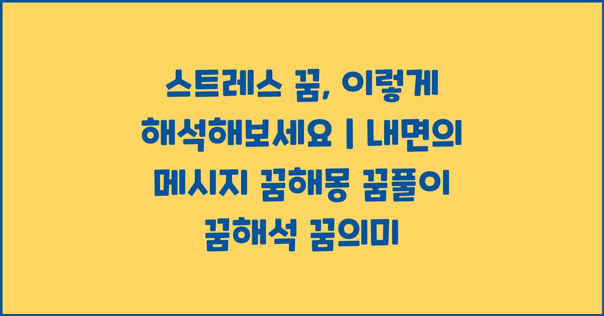 스트레스 꿈의 의미: 🌙 당신의 내면을 들여다보세요
