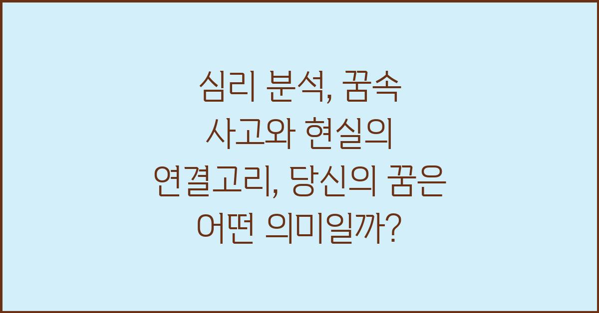 우리가 잠자는 동안 뇌는 다양한 이미지와 경험들을 종합하여 꿈을 만들어냅니다. 이러한 꿈은 종종 우리가 일상에서 느끼지 못한 감정이나 갈등을 드러내지요. 꿈속 사고와 현실의 연결고리는 심리 분석을 통해 명확히 할 수 있습니다. 즉, 꿈은 우리가 놓치고 있는 심리적 문제를 파악하게 도와주는 소중한 도구가 될 수 있습니다.