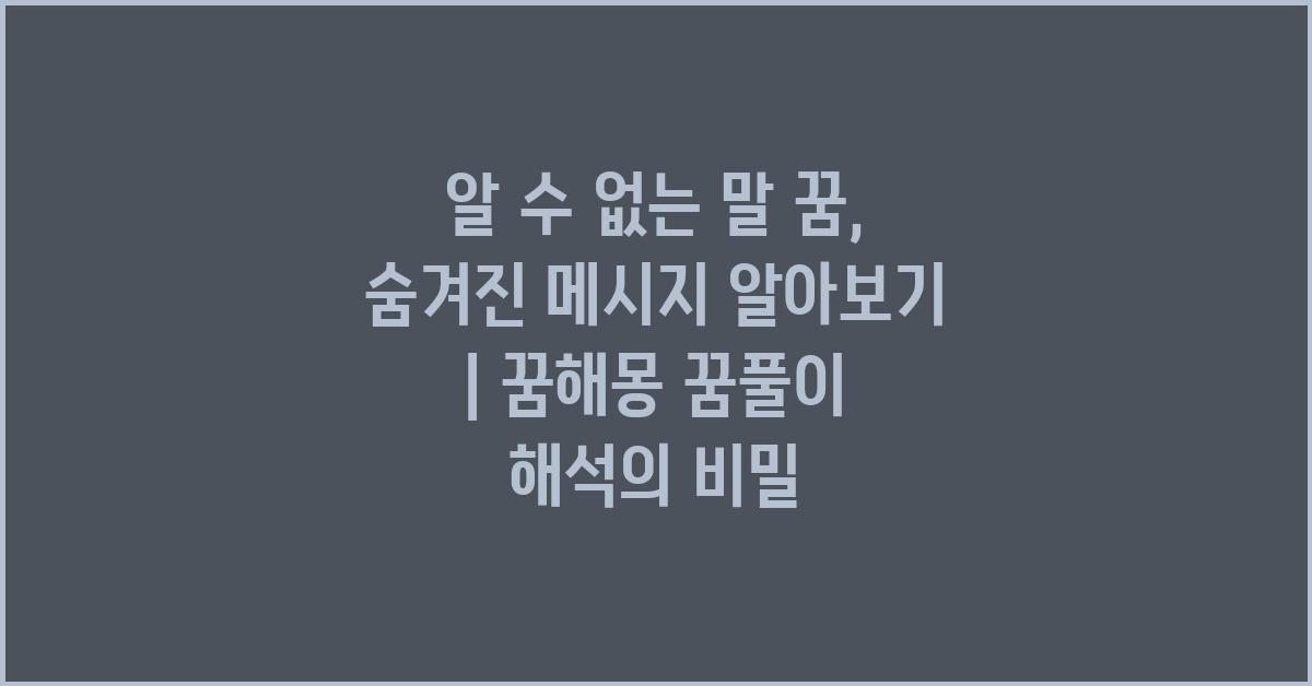 알 수 없는 말 꿈, 숨겨진 메시지 | 꿈해몽 꿈풀이 꿈해석 꿈의미는 우리에게 놀라운 통찰력을 제공합니다. 이 꿈을 만나는 사람들은 각자의 감정과 기억을 되돌아보는 기회를 가지며, 새로운 시작을 맞이할 준비가 되어 있습니다. 개인적으로도 이런 꿈들이 차별화된 자아를 발견할 기회를 제공해준다고 생각해요.