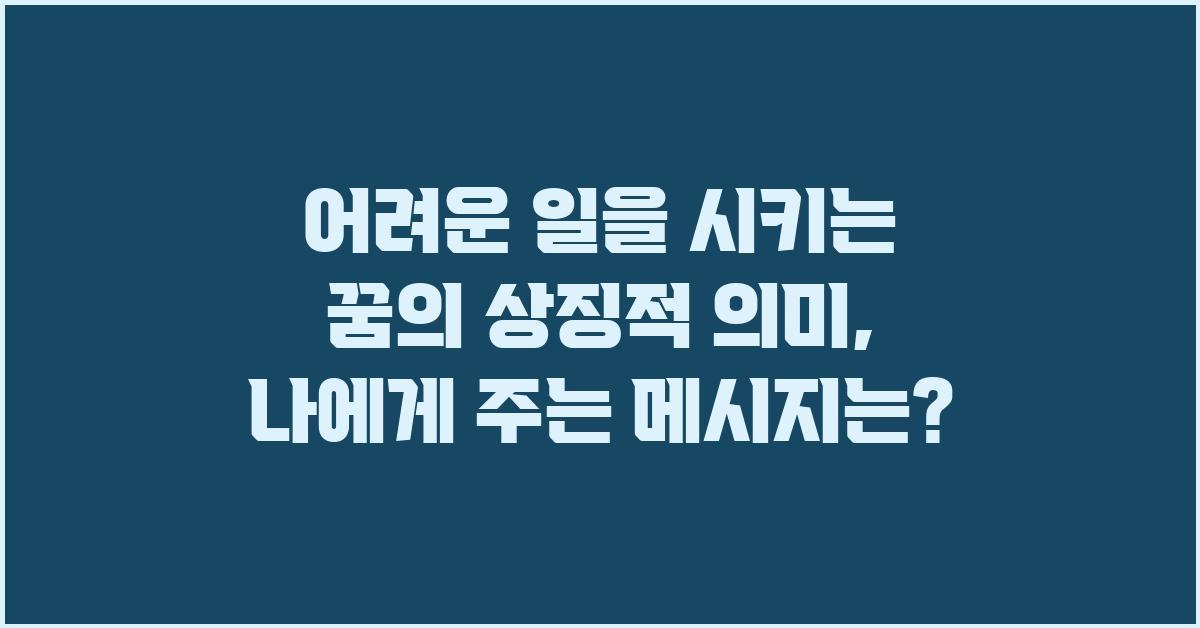 어려운 일을 시키는 꿈은 대개 현재의 스트레스 상황이나 직면한 문제를 반영하며, 이를 통해 성장할 기회를 나타낼 수 있습니다.