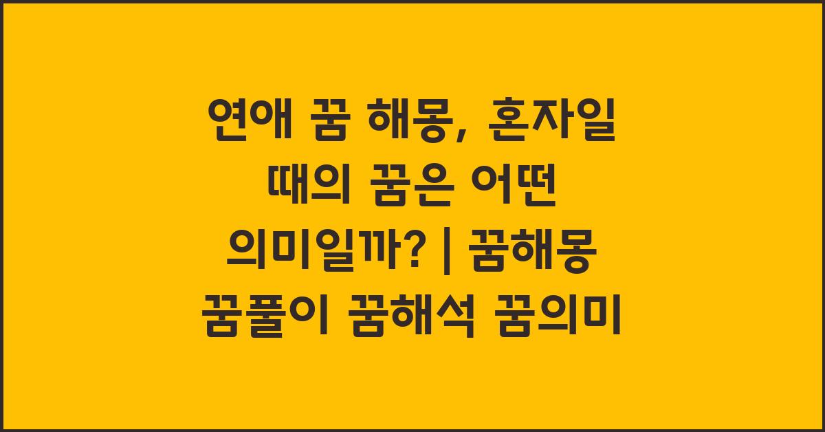 📚 혼자일 때의 연애 꿈, 어떤 의미일까?