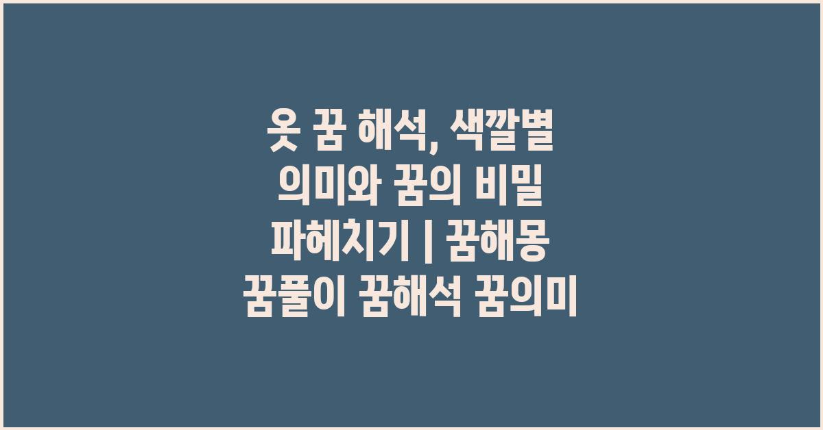 꿈은 우리의 무의식에서 생겨나는 신비한 세계입니다. 특히 꿈속에서 나타나는 옷은 우리 삶의 여러 가지 요소를 상징할 수 있습니다. 예를 들어, 옷 꿈 해석: 색깔과 종류별 의미 분석 | 꿈해몽 꿈풀이 꿈해석 꿈의미에 따르면, 꿈속의 옷은 우리가 느끼는 감정이나 상황을 반영하는 경우가 많습니다. 우리 각자의 꿈속에서 물리적으로 착용하는 옷은 때로는 사회적 지위나 자아의 표현일 수 있습니다. 꿈속에서 입었던 옷의 색상이나 특징에 따라 다르게 해석될 수 있습니다. 그래서 오늘은 이 꿈의 비밀을 탐구해 보려 합니다.