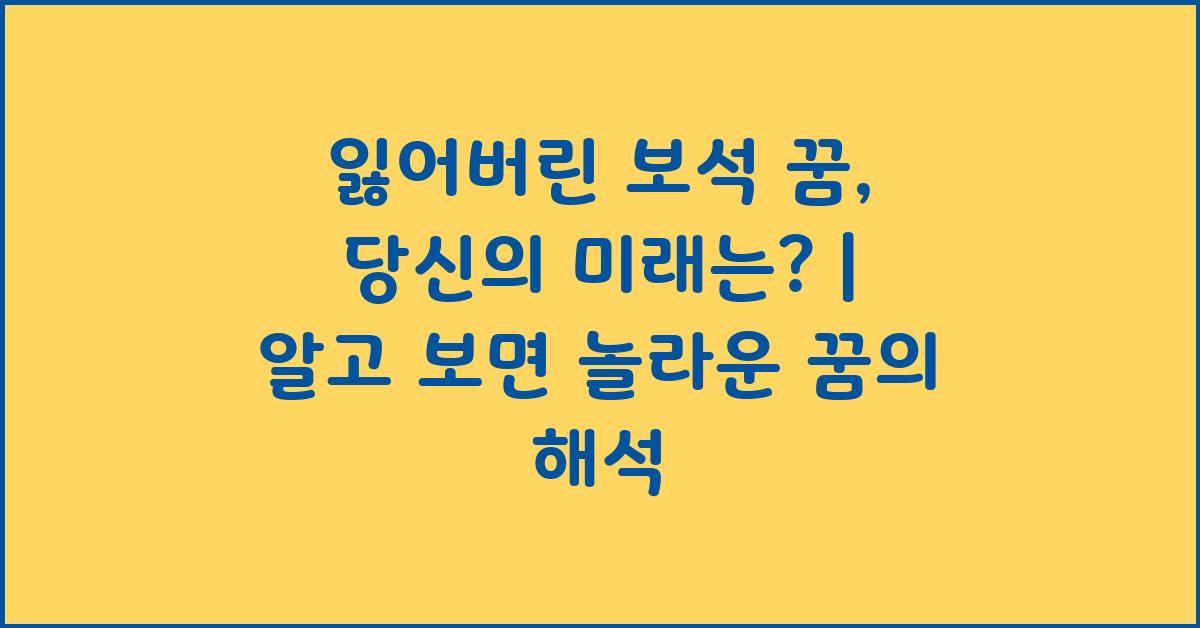 💎 꿈의 의미: 잃어버린 보석 꿈이 내포하는 가치