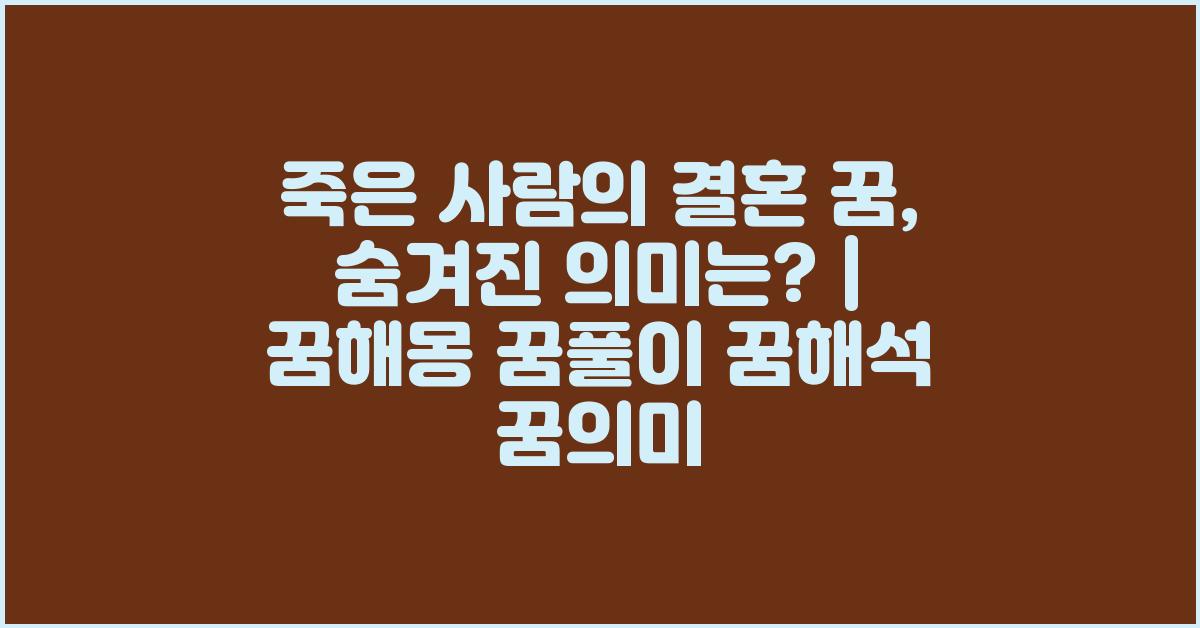 죽은 사람의 결혼 꿈의 전반적인 이해