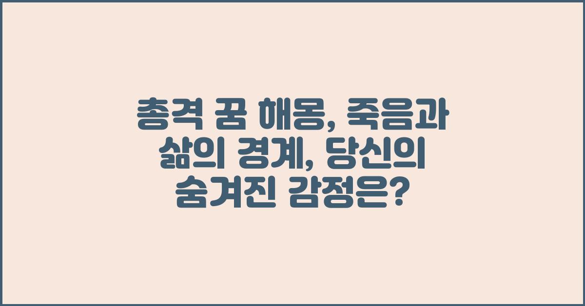 꿈은 항상 신비로운 세계로 가는 창문과도 같다. 특히, 총격 꿈 해몽은 많은 사람에게 두려움과 혼란을 안길 수 있다. 왜냐하면 총격이라는 잔인한 이미지가 우리의 무의식에서 어떤 중요한 메시지를 전달하기 때문이다. 이 꿈을 꾸고 나면, 우리는 그 의미를 깊이 생각해보게 된다. 총격 꿈 해몽은 죽음과 삶의 경계, 즉 우리 존재의 본질에 대한 질문을 던진다. 여러분은 이러한 꿈에 대해 어떤 생각을 하고 있나요?