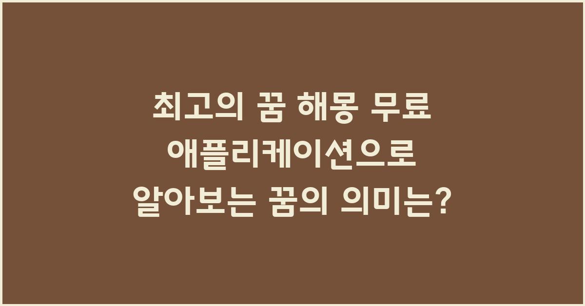꿈은 우리 마음 속 깊은 곳의 이야기입니다. 잠을 자는 동안 우리의 무의식은 다양한 이미지를 만들어내 다가오는 현실을 조명하곤 합니다. 이때, 꿈의 내용을 해석하는 과정이 중요한데, 이는 우리가 자신의 감정과 염원, 두려움을 더욱 잘 이해하는 데 도움을 줄 수 있습니다. 이를 위한 가장 유용한 도구 중 하나가 바로 최고의 꿈 해몽 무료 애플리케이션입니다. 이 애플리케이션은 사용자들이 꿈을 기록하고, 꿈의 의미를 해석하는 데 도움을 줍니다.