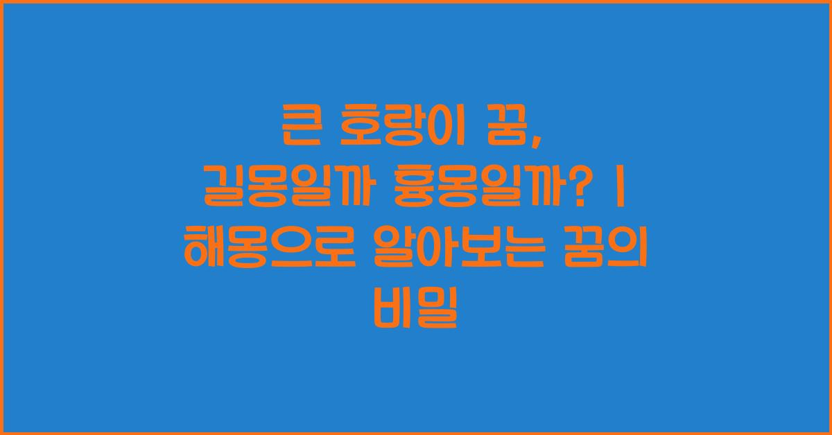 꿈은 우리의 잠재된 감정과 생각을 반영하는 거울입니다. 특히 큰 호랑이 꿈은 많은 이들에게 궁금증을 불러일으키는 주제 중 하나인데요. 이 꿈이 과연 길몽일까, 아니면 흉몽일까요? 여러분도 이런 궁금증을 느껴본 적 있으시죠? 꿈이라는 신비로운 세계에서, 큰 호랑이 꿈의 해석을 통해 삶의 여러 가지 문제를 풀어볼 수 있습니다.