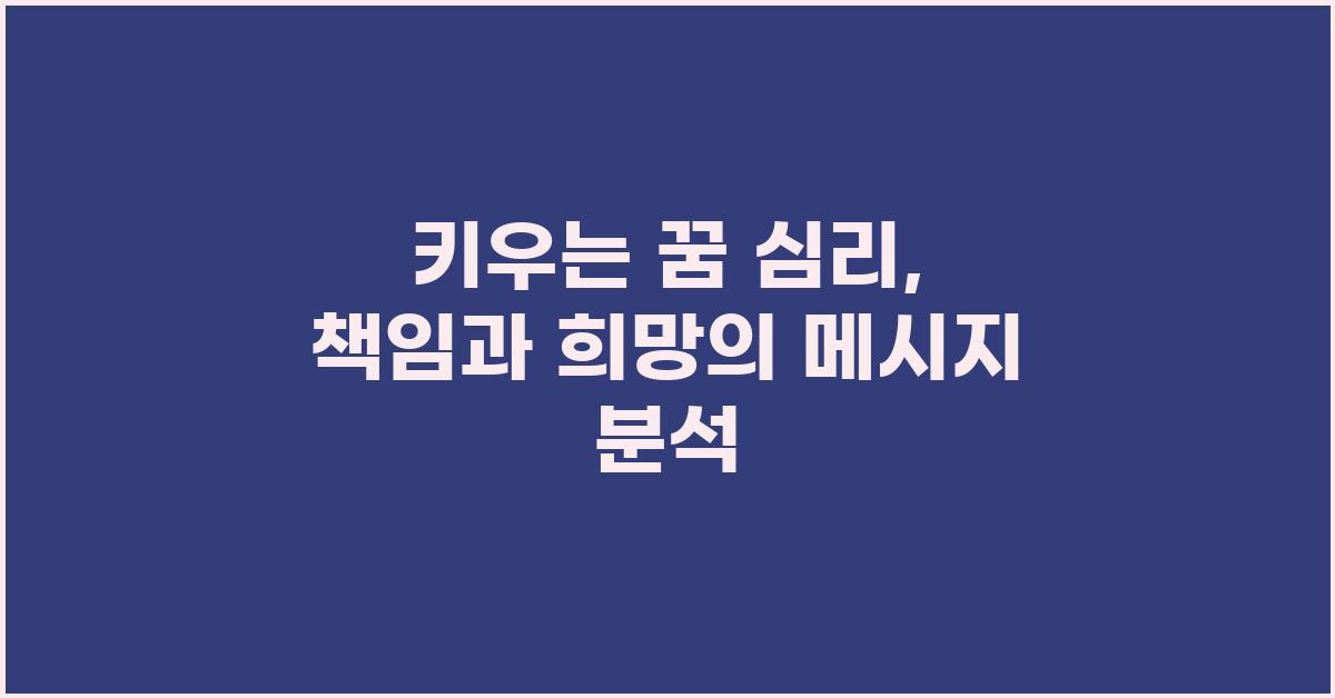 키우는 꿈 심리: 희망과 책임의 상징 | 꿈해몽 꿈풀이 꿈해석 꿈의미에 대해 알아보았습니다. 이 꿈은 각자의 삶에서 희망과 책임을 동시에 느끼게 하며, 내가 원하는 방향으로 나아가기 위한 기틀을 세우는 데 큰 도움이 될 수 있습니다. 각자의 꿈의 의미를 깊이 이해하고, 이를 통해 좀 더 나은 삶을 위한 실천을 해보시길 바랍니다.