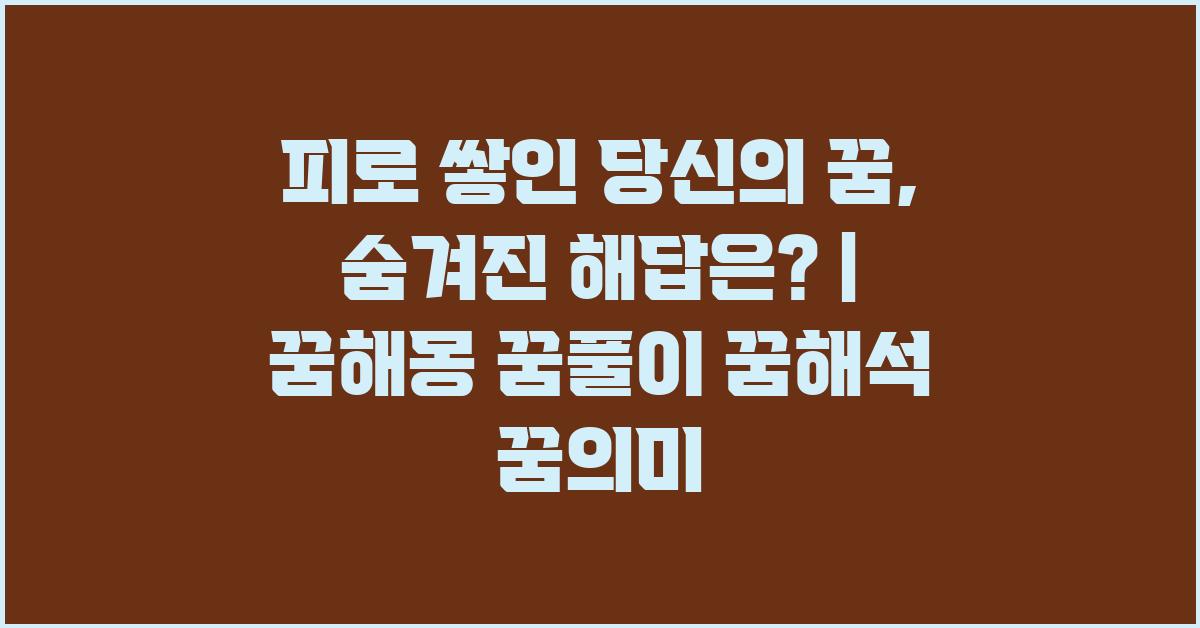 💡 꿈에서 피로를 느낄 때의 해석