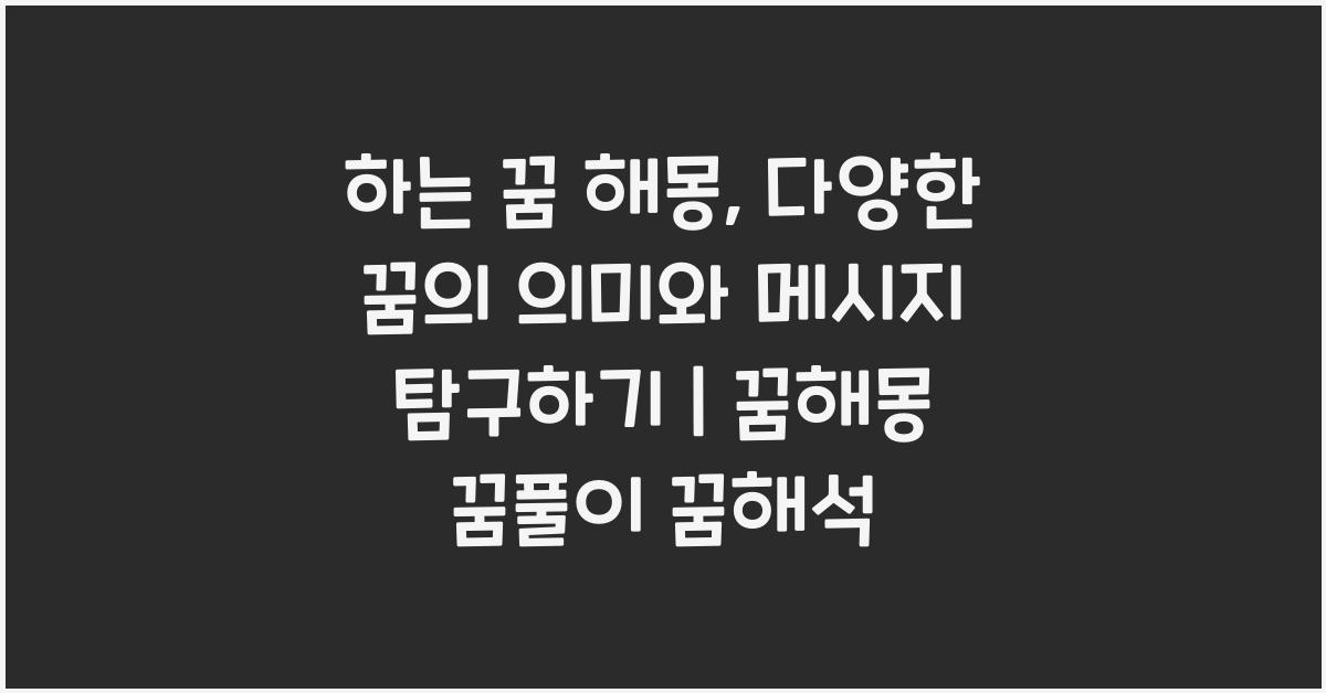 꿈 해몽은 단순히 재미로 끝나는 것이 아닙니다. 우리의 열망, 두려움, 스트레스 등을 이해하는 데 큰 도움이 됩니다. 하는 꿈 해몽: 꿈의 메시지를 찾아서 | 꿈해몽 꿈풀이 꿈해석 꿈의미를 통해 우리는 내면의 소리를 듣는 법을 배우게 됩니다.