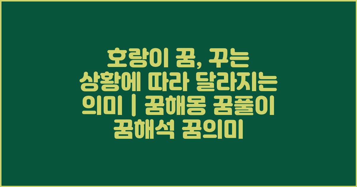 호랑이꿈은 여러 상황에 따라 다르게 해석될 수 있습니다. 반드시 나쁜 의미만 있는 것은 아닙니다. 꿈의 맥락에 따라 긍정적인 메시지도 전달할 수 있습니다.